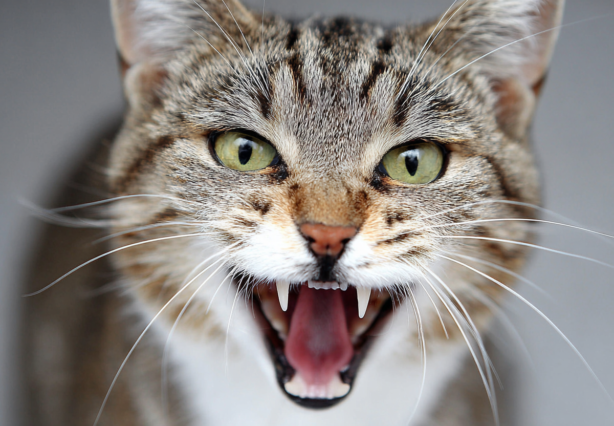 Низкое гортанное мяуканье предупреждает: кошка может быть раздражена или чувствовать угрозу.