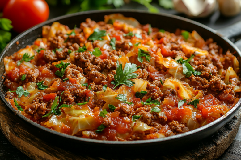 Для приготовления обжарьте 400 г любого мясного фарша до изменения цвета, добавьте 1 нарезанную луковицу и 1 тертую морковь, пассеруйте до мягкости. Введите 50 г томатной пасты, посолите и поперчите по вкусу. Затем добавьте 300 г тонко нашинкованной белокочанной капусты, влейте 100 мл воды, накройте крышкой и тушите на среднем огне около 20 минут, пока капуста не станет мягкой, но сохранит легкую упругость.