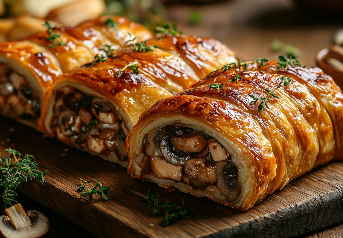 Этот рулет — настоящее спасение, когда нужно приготовить что-то вкусное и эффектное без лишних хлопот. Хрустящий бекон снаружи и сочная начинка с грибами и сыром внутри создают идеальный контраст текстур. Блюдо выглядит как ресторанное, но готовится достаточно просто для повседневного ужина.