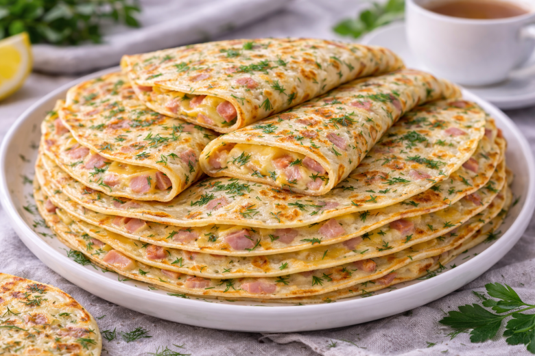Эти блинчики с ветчиной — настоящая палочка-выручалочка, когда хочется сытно, быстро и по-домашнему вкусно. Нежное тесто, ароматная ветчина, тянущийся сыр и свежая зелень делают их идеальными и для завтрака, и для перекуса. Пока жарятся, исчезают — проверено не раз.