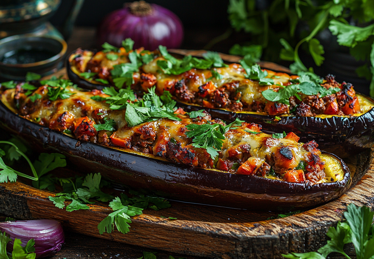 Это сытное и ароматное блюдо татарской кухни, где лодочки из запеченных баклажанов наполняются фаршем с луком, морковью, сладким изюмом или курагой, а затем заливаются густым томатным соусом и запекаются до золотистой корочки с сыром. Получается невероятно сочно, вкусно и празднично! Название «Татарская песня» прекрасно отражает гармонию и яркость вкусов этого замечательного блюда.
