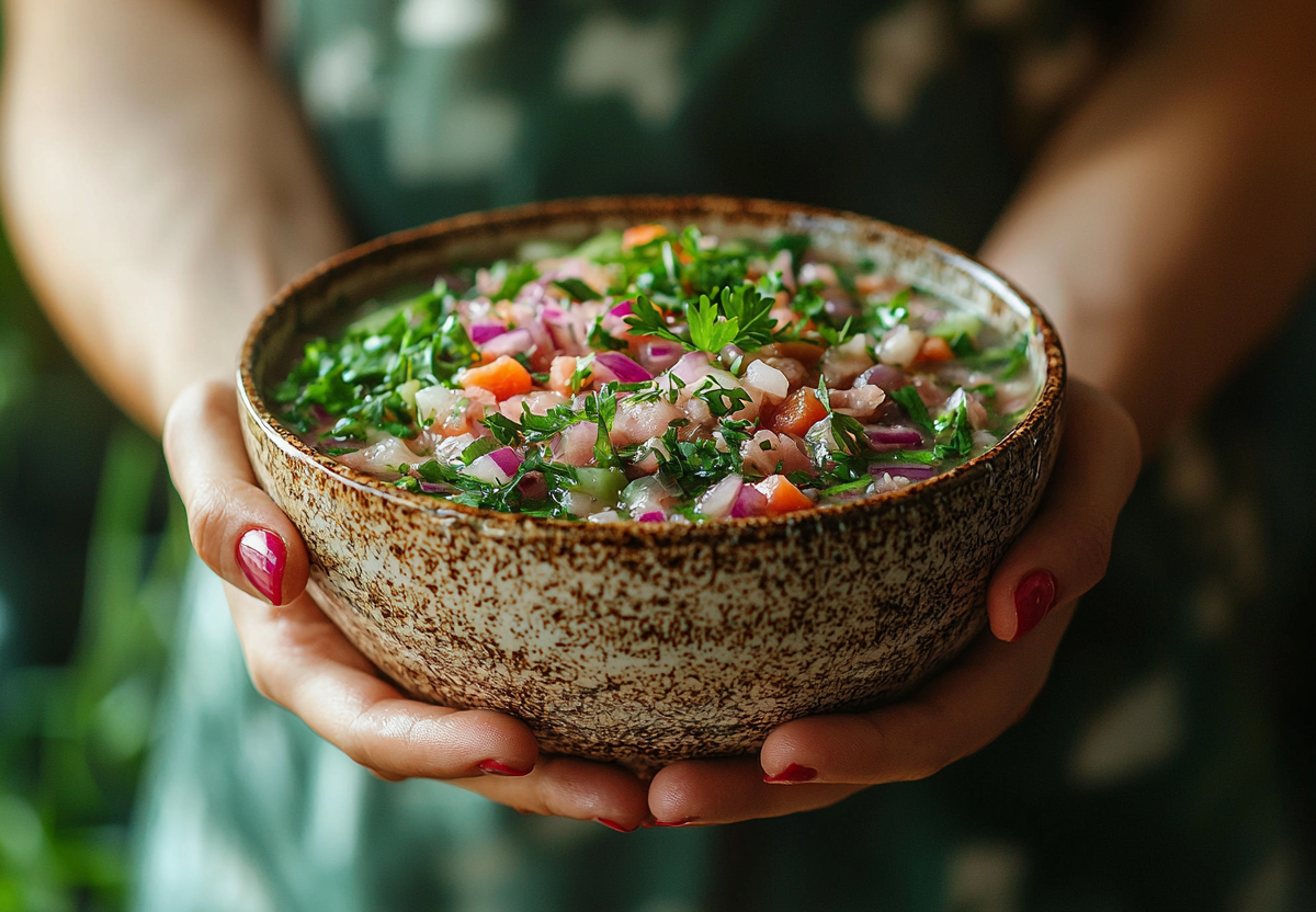 Айран не просто охлаждает — его пузырьки «массажируют» вкусовые рецепторы, усиливая яркость каждого компонента. А льдинки из травяных отваров добавляют сюрприз в каждую ложку!