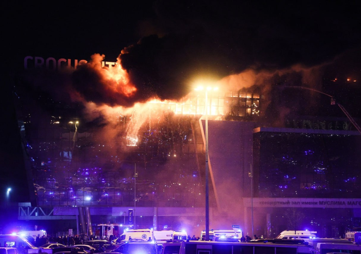 Telegram-канал Baza также написал, что террористы пронесли в «Крокус Сити Холл» пластиковые емкости с бензином в рюкзаках. Издание пояснило, что они разлили горючее внутри здания и подожгли его.