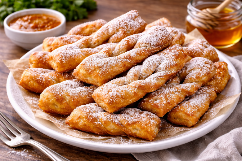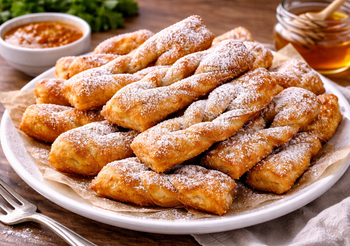 Приготовление: в миске соедините кефир, яйцо, сахар, масло, соль, коньяк и соду, перемешайте и постепенно подсыпайте муку, замешивая мягкое, не липкое тесто. Накройте и оставьте на 20 минут «отдохнуть». Раскатайте пласт толщиной около 1 см, нарежьте прямоугольниками, в центре сделайте надрез и выверните край, формируя косичку. Разогрейте масло, обжаривайте таратушки до золотистости с двух сторон, затем выложите на салфетки. Перед подачей посыпьте сахарной пудрой или полейте медом — получается нежно, пышно и по-настоящему вкусно.