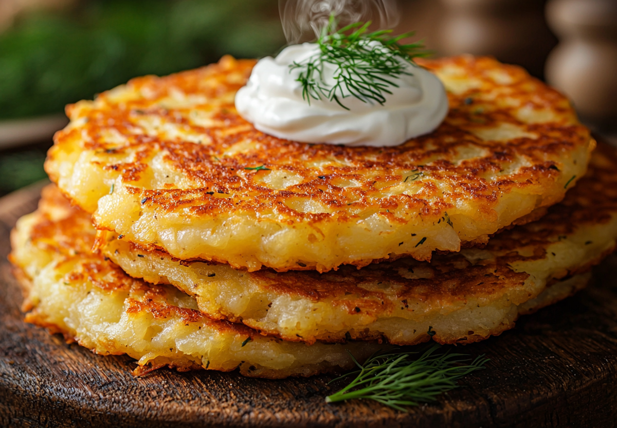 Возьмите четыре крупные картофелины, очистите их и натрите на мелкой терке. Чтобы картофельная масса не потемнела, ее нужно быстро перемешать и отжать от лишнего сока. Это очень важный шаг, именно он обеспечит ту самую хрустящую текстуру. К отжатому тертому овощу добавьте одно сырое яйцо, одну небольшую измельченную луковицу, столовую ложку крахмала, посолите и поперчите по своему усмотрению. Перемешайте до получения массы без комков. Нагрейте в посуде с толстым дном достаточное количество масла. Ложкой выкладывайте массу, формируя аккуратные оладьи, слегка прижимайте их лопаткой. Жарьте до появления корочки. Когда драники будут готовы, убавьте нагрев и потомите еще пару минут, чтобы они пропеклись внутри. Подавайте их немедленно, пока они не потеряли свой хруст, со сметаной или любимым соусом.