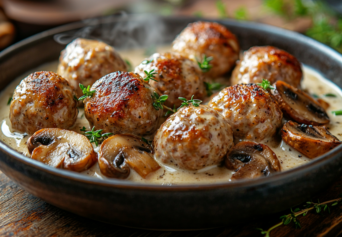 Тефтели из индейки с шампиньонами в сметанном соусе! Полезное блюдо для семьи! Нежные сочные тефтели из фарша индейки в сливочно-сметанном соусе с ароматными шампиньонами — это идеальное блюдо для здорового питания. Гармоничное сочетание белков, полезных жиров и низкого содержания углеводов делает это блюдо питательным и легким.