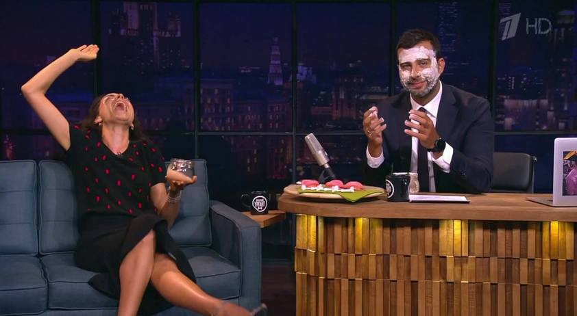 Во время «Вечернего шоу» Ургант нанёс на своё лицо маску якобы из соловьиного помёта, а потом пошутил, что нашёл «хорошее название для шоу на канале "Россия"».