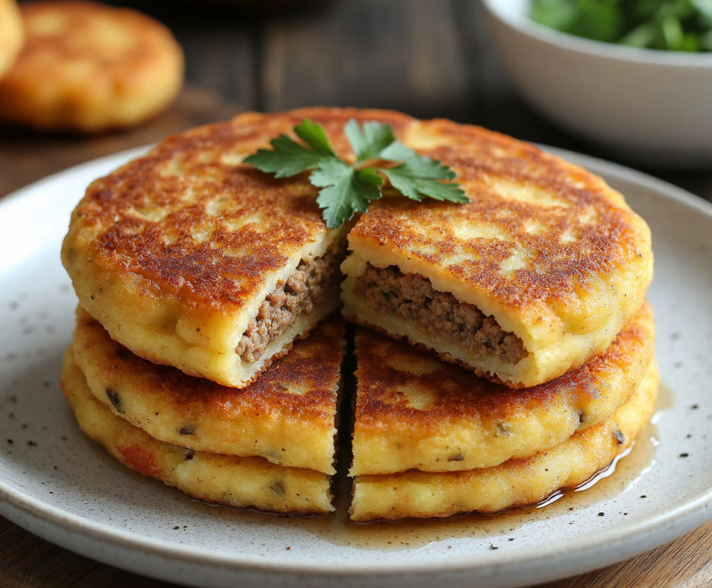 Забудьте о кропотливой лепке классических зраз — эти картофельные «лодочки» предлагают тот же восхитительный дуэт вкусов, но в более простой и эффектной форме. Хрустящая золотистая оболочка из картофельного пюре скрывает внутри сочную ароматную мясную сердцевину. Это сытное и самодостаточное блюдо, где гарнир и начинка соединены в одной аппетитной лепешке, которая хороша и горячей, и остывшей.