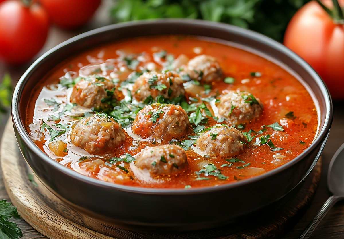 Для приготовления понадобится: для фрикаделек — 300 г мясного фарша, 1 небольшая луковица, соль, перец; для супа — 1 луковица, 1 морковь, 2-3 ст. л. томатной пасты, 1,5–2 л воды или бульона, 3 картофелины, соль, перец, сахар (щепотка, чтобы сбалансировать кислоту). Для фрикаделек мелко нарежьте лук, смешайте с фаршем, посолите, поперчите, вымесите и скатайте небольшие шарики. В кастрюле разогрейте масло, обжарьте мелко нарезанный лук и натертую морковь до мягкости. Добавьте томатную пасту, обжаривайте 2 минуты. Влейте горячую воду или бульон, доведите до кипения. Картофель нарежьте кубиками, добавьте в суп. Варите 10 минут. Затем аккуратно опустите фрикадельки в кипящий суп. Добавьте лавровый лист, специи, соль, перец и щепотку сахара. Варите на медленном огне 15–20 минут, пока фрикадельки не всплывут, а картофель не станет мягким. Подавайте горячим, обильно посыпав свежей зеленью.