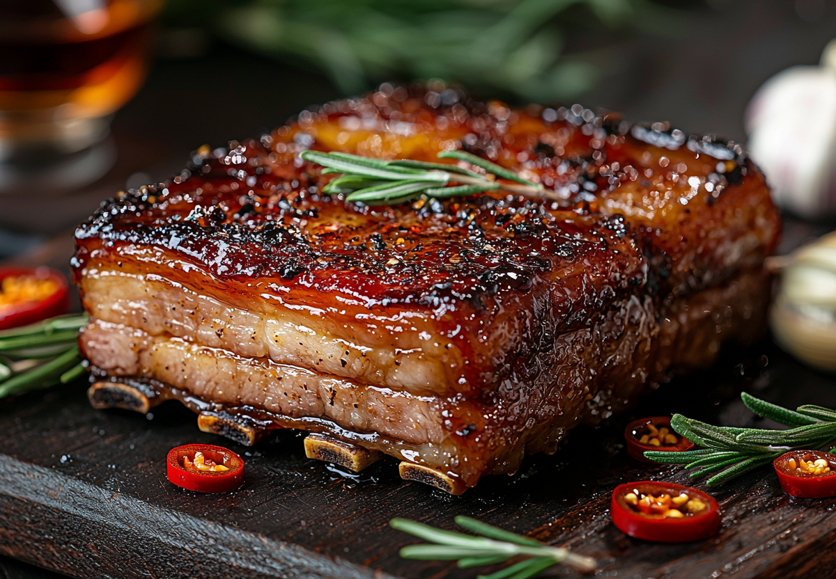 Томленая грудинка с коньяком! На бутерброды и в нарезку — вкуснота! Этот рецепт превращает обычную грудинку в нежное, тающее во рту мясо с насыщенным вкусом. Коньяк придаёт блюду благородные нотки, а чеснок и перец — пикантную остроту. Идеально для праздничного стола или особого ужина!