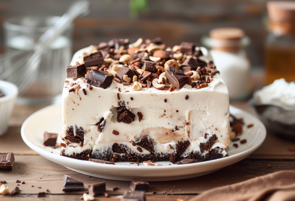 Перед подачей аккуратно извлеките торт, слегка прогрев форму снаружи. Украсьте посыпкой, орехами или шоколадом. По желанию добавляйте фрукты — каждый раз вкус будет новым и интересным.