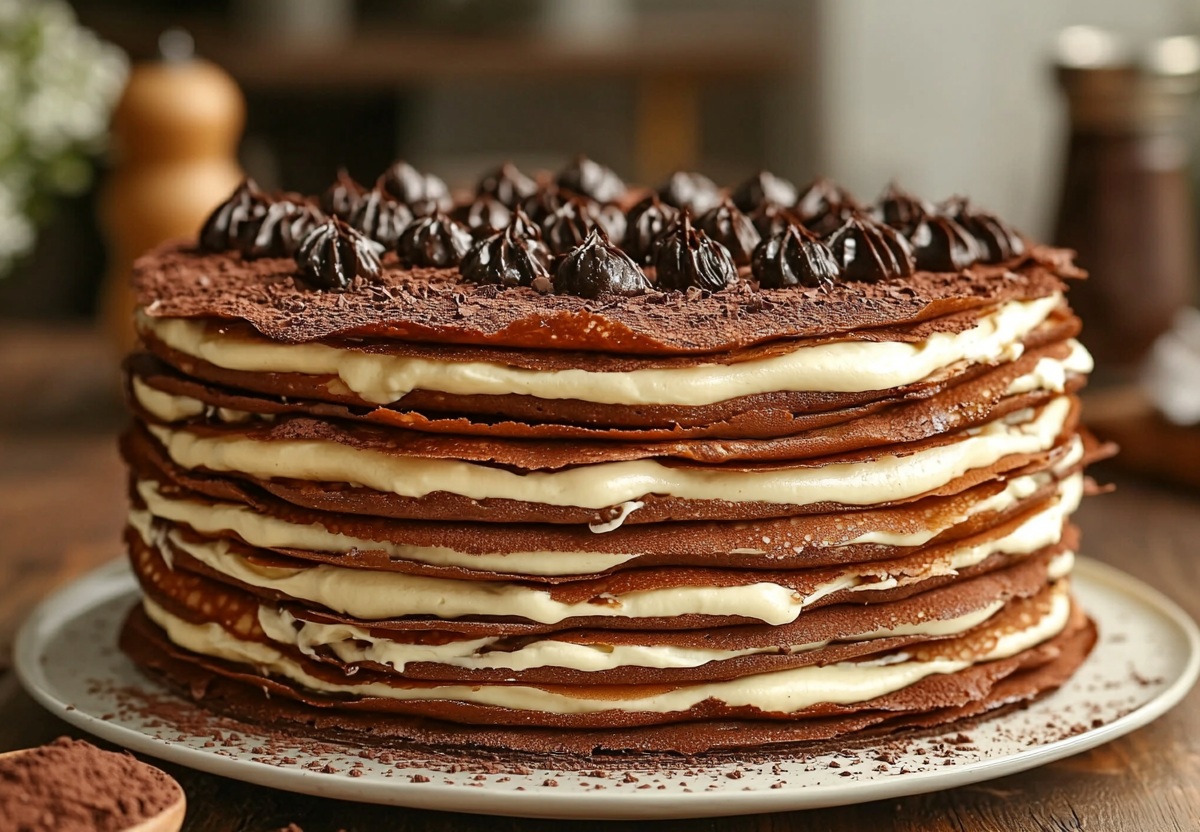 Рецепт: для коржей смешайте банку сгущенки с 2 яйцами, 2 ст. л. какао и постепенно добавляйте 150–200 г муки, чтобы получилось тесто как на оладьи. Жарьте тонкие коржи на хорошо разогретой сковороде без масла по 1-2 минуты с каждой стороны — они не должны подгореть. Для крема взбейте банку сгущенки с 200 г размягченного сливочного масла до воздушной консистенции. Промажьте остывшие коржи, соберите торт и дайте ему настояться в холодильнике хотя бы 2 часа.