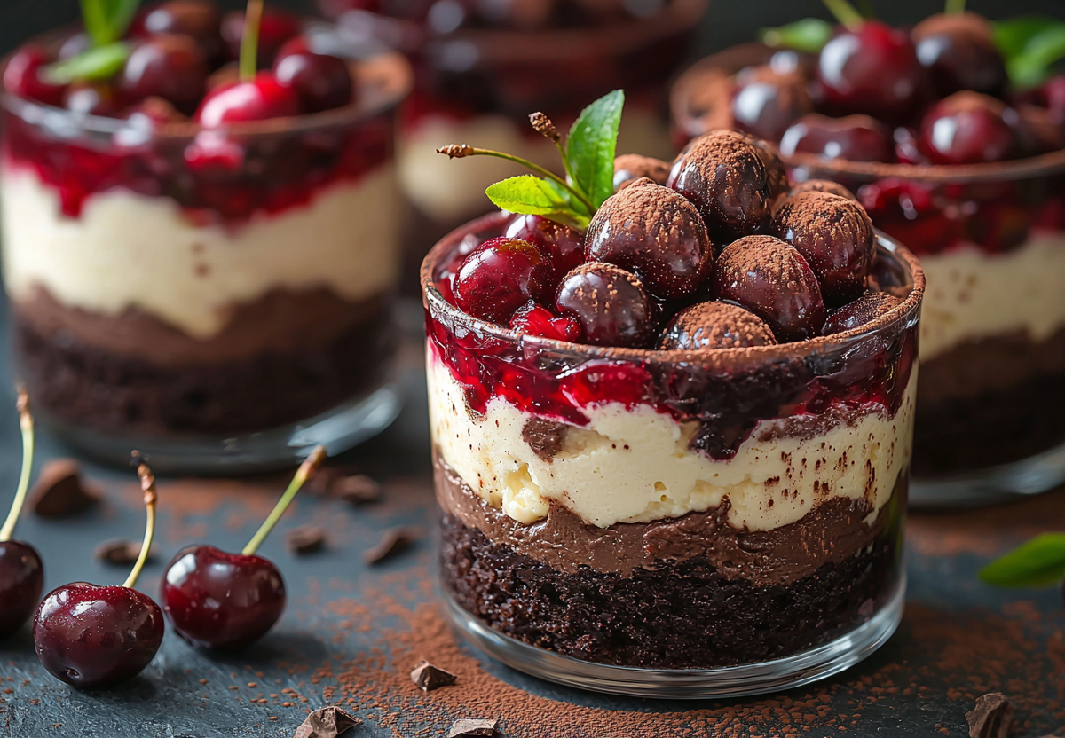 Трайфлы «Черный лес» — это изысканный десерт, сочетающий нежный шоколадный бисквит, вишню в коньяке и воздушный творожный крем. Яркий вкус и элегантная подача делают его идеальным для праздничного стола. Приготовление требует времени, но результат стоит всех усилий.