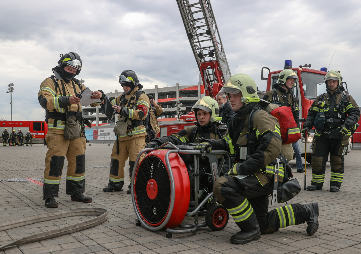 В рамках международного салона «Комплексная безопасность 2021» на стадионе московского футбольного клуба «Спартак» прошли учения спасателей МЧС.
