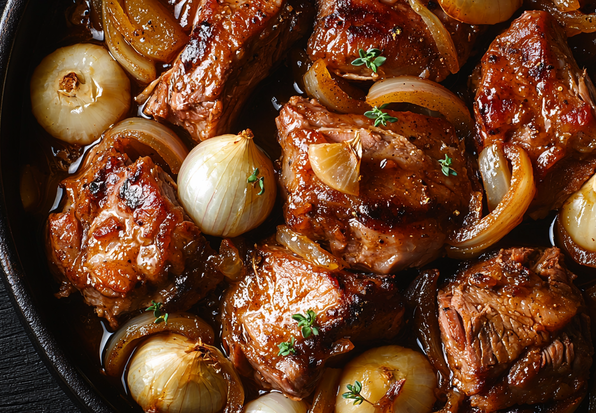 Тушёная свинина с луком и уксусом! Мягкая и расходится на волокна