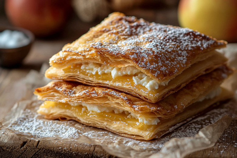 Деревенская выпечка — это всегда про душевность и щедрость начинки. Но что, если взять привычные вкусы и облачить их в более изящную форму? Эти конвертики удачно сочетают нежность творога, легкую кислинку яблока и ванильную сладость, знакомые по классическим пирожкам, но подают их в виде аккуратных, хрустящих треугольников. Они получаются удивительно сочными внутри благодаря сочности фруктов и влажности творога, а снаружи покрываются румяной золотистой корочкой. Это идеальный компромисс для тех, кто любит сытную домашнюю выпечку, но ценит красивую подачу.