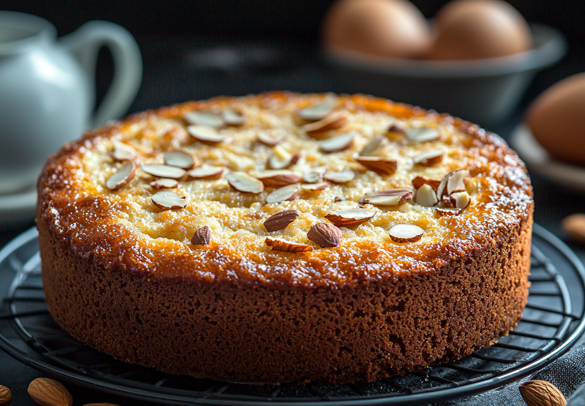 Измельчите миндаль (можно обжарить на сухой сковороде для аромата) и добавьте в тесто. Консистенция должна быть как густая сметана.