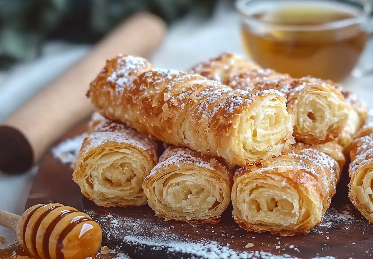 3. Выложите трубочки на противень с пергаментом. Выпекайте при 180 °C 18–22 минуты до золотистого цвета. Дайте немного остыть — внутри образуется хрустящая карамельная прослойка!