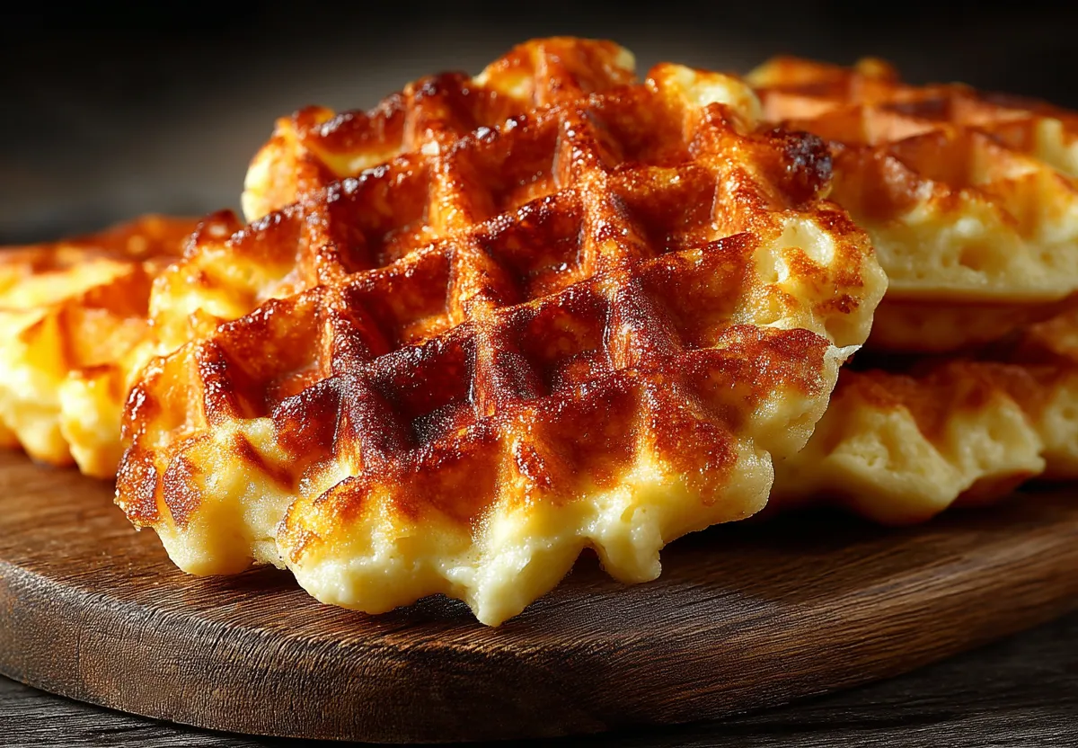 Разогрейте вафельницу или электрогриль, выкладывайте тесто порциями и готовьте до золотистой корочки.