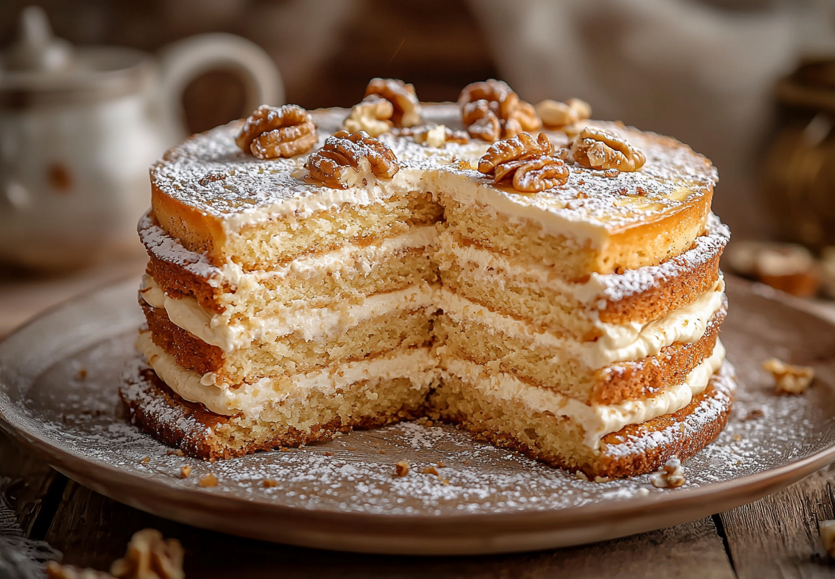 Творожный торт с заварным кремом: очень простой рецепт понравится хозяйкам! Это воплощение домашнего уюта и вкуса из детства. Мягкие творожные коржи в сочетании с бархатным ореховым кремом создают идеальную гармонию. Процесс приготовления простой, а результат превзойдет все ожидания!