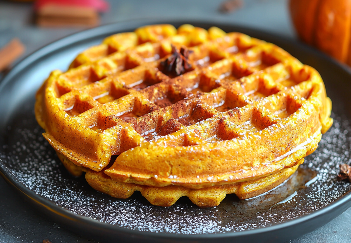 Эти вафли я впервые приготовил прошлой осенью, когда нужно было срочно придумать полезный завтрак для детей. Обычные вафли им уже надоели, а тыква как раз осталась с праздника. Неожиданно простой набор ингредиентов подарил нам блюдо, которое теперь стало нашей любимой традицией для воскресных завтраков.