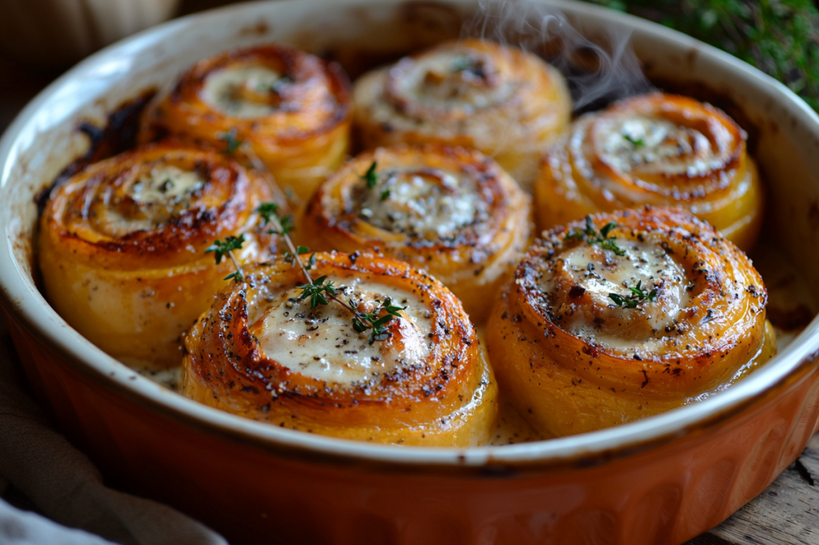 Осень — самое время для уютных и полезных блюд из тыквы. Если ты думаешь, что этот золотистый овощ хорош только в кашах и супах, эти рулетики станут приятным открытием! Они сочетают нежную сладость запеченной тыквы с сочной куриной начинкой и пряными травами. Блюдо выглядит по-праздничному нарядно, но готовится просто. Рулетики получаются достаточно сытными, чтобы подать их на ужин, и в то же время достаточно легкими для тех, кто следит за питанием. Идеальный осенний ужин, который согреет и порадует всю семью!