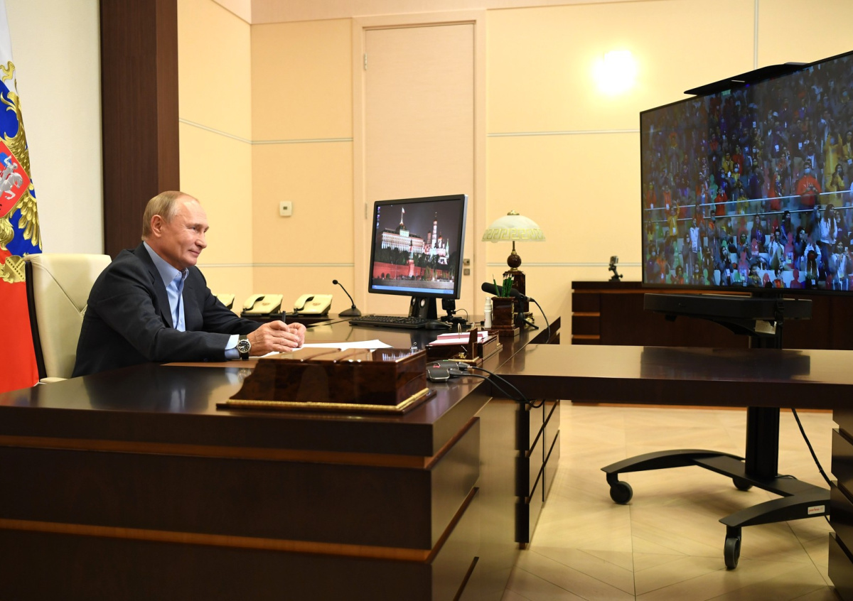 Президент России Владимир Путин в режиме видеоконференции пообщался с финалистами Всероссийского конкурса для школьников «Большая перемена». Одна из участниц спела по просьбе главы государства.