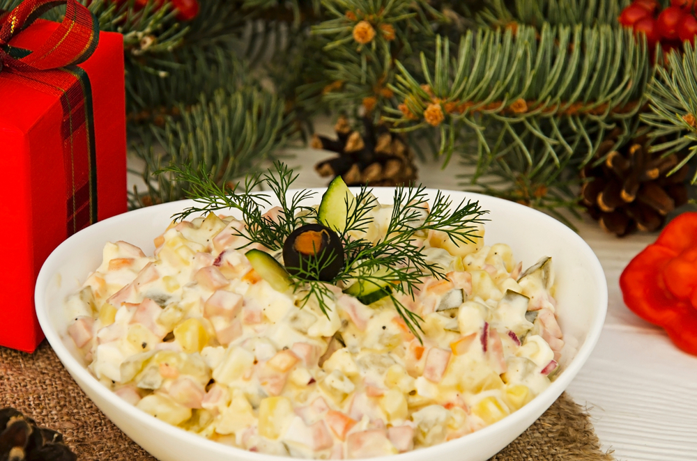 Попробуем добавить сладкие яблоки в новогодний салат оливье. Фрукты придадут знакомому вкусу новое звучание и приятно удивят гостей в праздничную ночь.