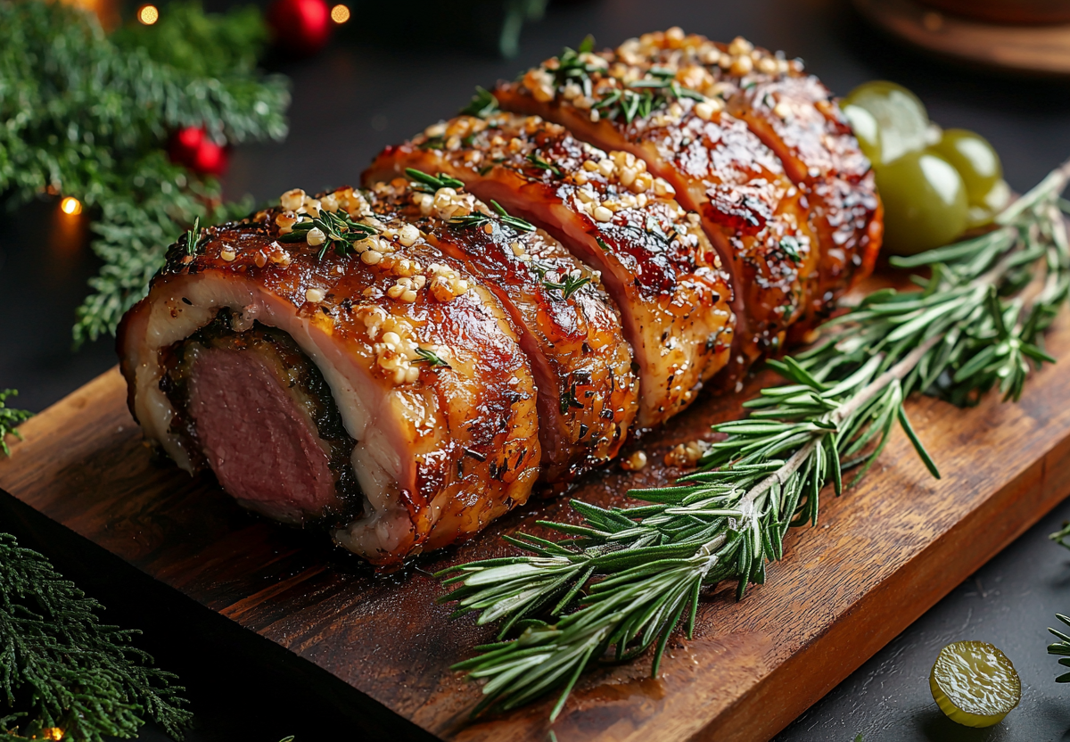 Если вы ищете достойное, сытное и очень эффектное украшение для новогодней мясной тарелки, этот рулет — безусловный фаворит. Его аппетитный вид в разрезе и насыщенный, чистый вкус высококачественного мяса не оставят равнодушными даже самых взыскательных гурманов.