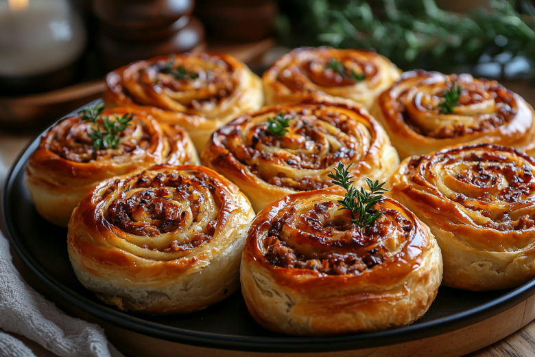 Улитки с фаршем по этому рецепту готовятся без теста и без жарки — положили фарш на лаваш, скрутили, запекли — и готово!