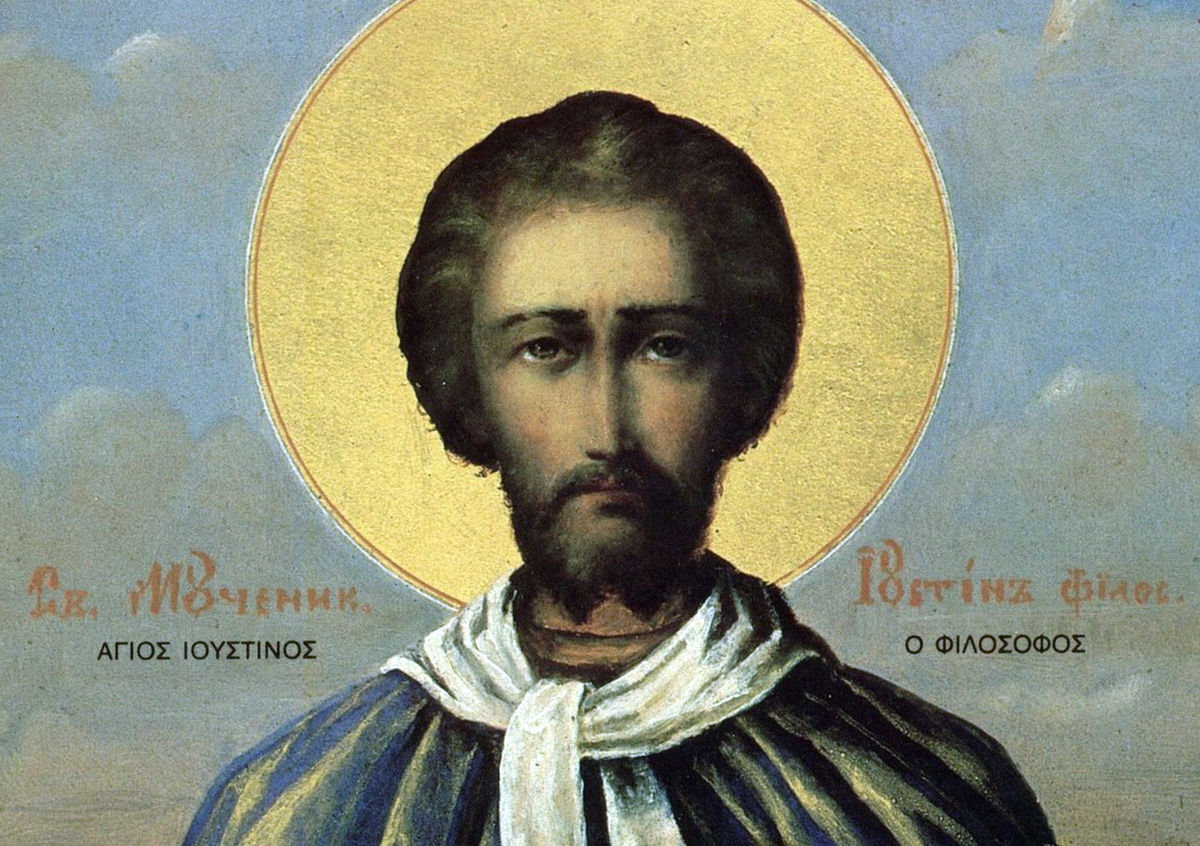 Святой Иустин Философ родился около 100 года н. э. в городе Сихем (сейчас Наблус в Палестине) в семье греков-язычников. По преданию, в молодости он старательно изучал различные философские школы: стоицизм, аристотелизм, пифагореизм, платонизм, однако в итоге обратился к христианству. Дальнейшую жизнь он посвятил проповеди христианства: путешествовал по Римской империи, выступал с публичными диспутами, а также написал ряд богословских трудов. Наиболее известный из них — «Апология» в защиту христиан — он прочел императору Антонину Пию около 155 года.