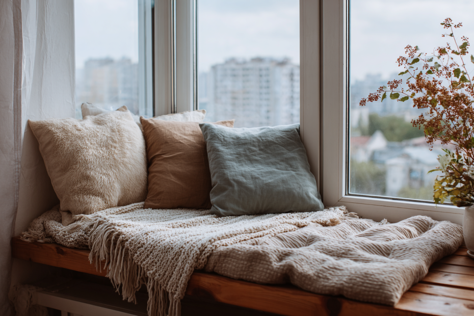 Даже стандартный подоконник можно сделать уютным, если добавить растения, керамику, книги или свечи. Главное — не перегружать. Уют — это всегда про ощущение баланса.