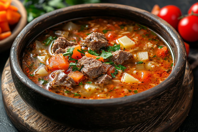 Машхурда — это наваристый и сытный суп узбекской кухни, который представляет собой идеальный баланс вкуса и пользы. Это густое, почти похлебкообразное блюдо, где нежная говядина или баранина сочетается с машем и рисом, создавая уникальную текстуру. Аромат супа складывается из букета восточных специй — зиры, барбариса и паприки, которые делают его вкус глубоким и запоминающимся. Это не просто суп, а настоящее самодостаточное блюдо, которое согреет и насытит в холодный день, став звездой вашего обеденного стола.