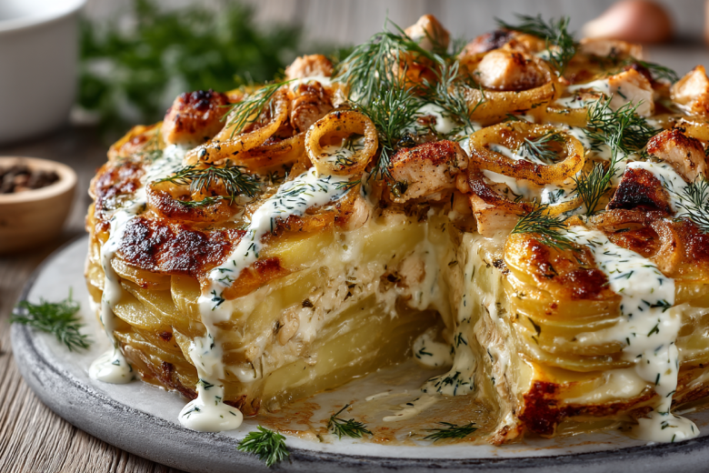 Ужин из килограмма картошки и упаковки грудки: запеканка с ароматной заливкой по-домашнему
