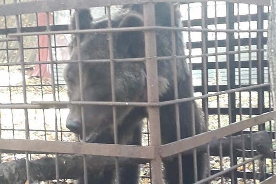 В Башкирии грибники нашли истощённого медведя в клетке
