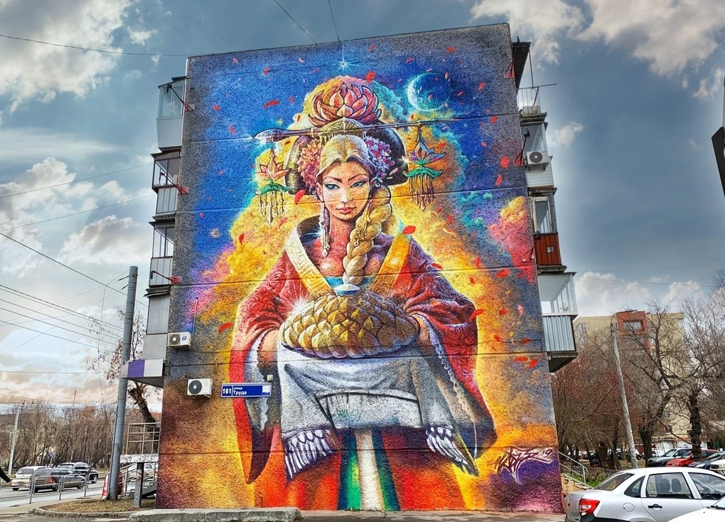 Масштабное граффити с изображением девушки, встречающей гостей, закрасили в Челябинске. Произведение на одном из домов в городе замазали серой краской в ночь на 16 ноября.