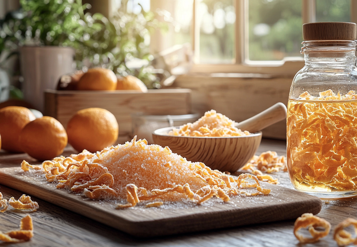 5. Кулинарная заготовка. Свежие корки можно измельчить или нарезать соломкой и добавлять в йогурты, выпечку и напитки. Главное — тщательно вымыть мандарины перед использованием.