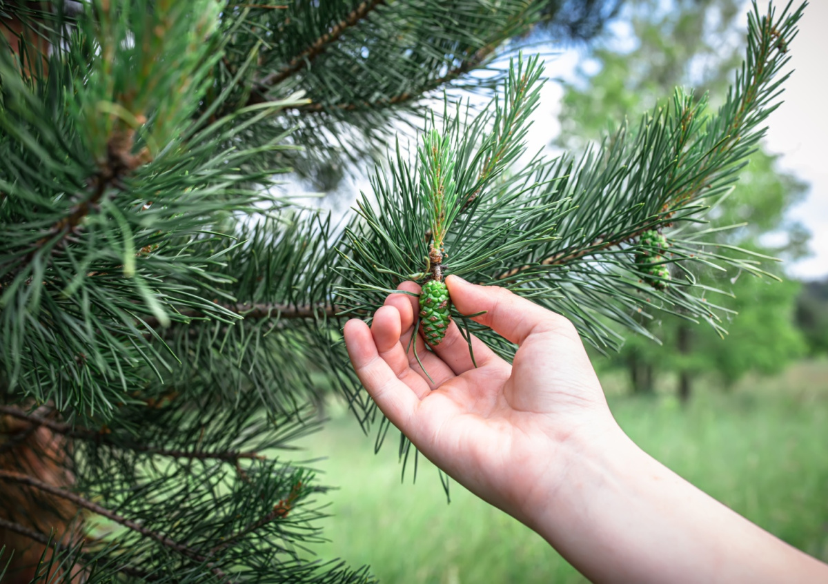 Молодые сосновые шишки лучше всего собирать в мае-июне. Идеальные шишки должны быть мягкими на ощупь, размером около 1–4 сантиметров, зелеными или с красноватым оттенком, без жестких чешуек.