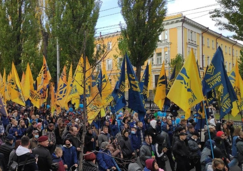 В митинге приняли участие до десяти человек под флагами запрещённой в России УНСО. Помимо запрета выступлений артистов из России националисты требовали «ограничить русскоязычный контент» в стране.