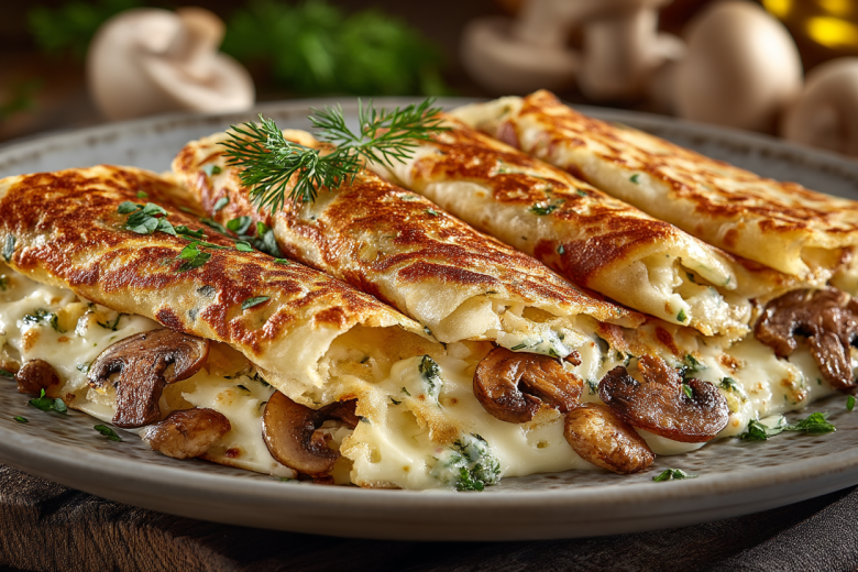 Получается обалденная вкуснятина: тонкий, хрустящий лаваш, внутри — нежная начинка из курицы и шампиньонов в сливочном соусе, а сверху — румяная шапка расплавленного сыра.