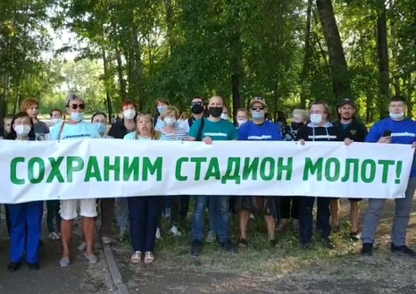 Активистка Елена Германова участвовала в записи обращения к Путину по ситуации с местным стадионом «Молот». Она была оштрафована на 20 тысяч рублей за организацию публичного мероприятия.