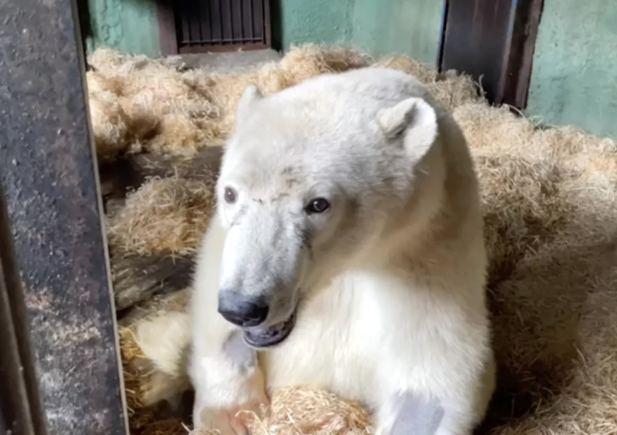 Директор Московского зоопарка Светлана Акулова опубликовала видео в своем Telegram-канале, запечатлевшее вечернюю трапезу раненного на Диксоне белого медведя. На фрагменте зверь с аппетитом ест овсяную кашу и курицу. От рыбы медведь решил отказаться, оставив ее про запас.