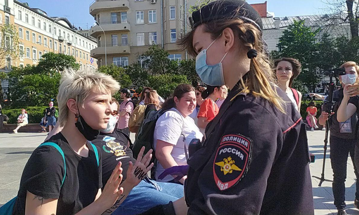 Акции проходят около памятника Надежде Крупской на Сретенском бульваре, в центре столицы.