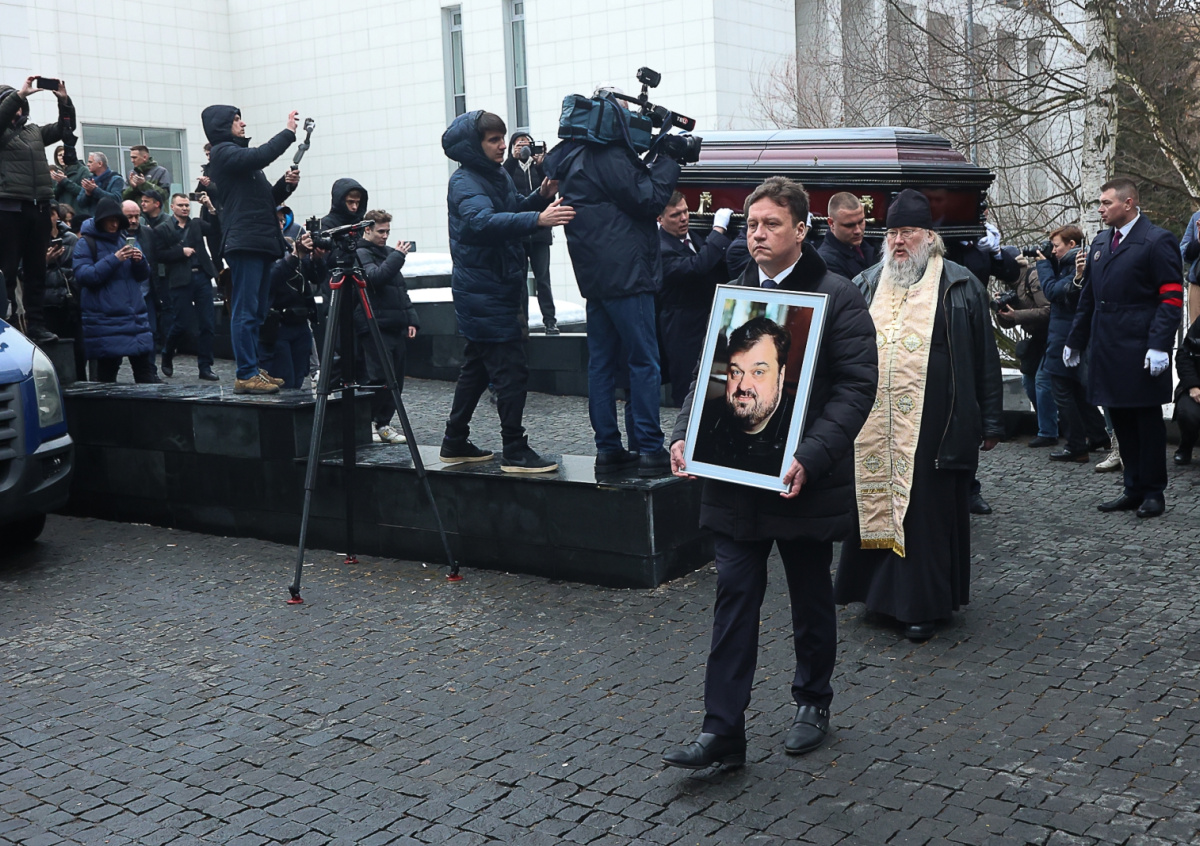 Максим Виторган на церемонии прощания со спортивным комментатором Василием Уткиным в Москве. Василий Уткин скончался 19 марта в возрасте 52 лет