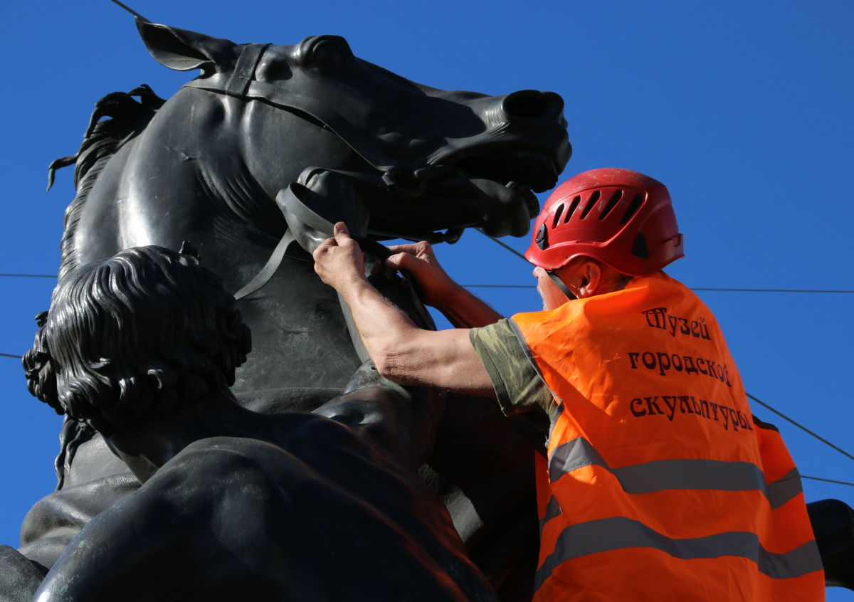 В Петербурге завершили реставрацию скульптуры на Аничковом мосту