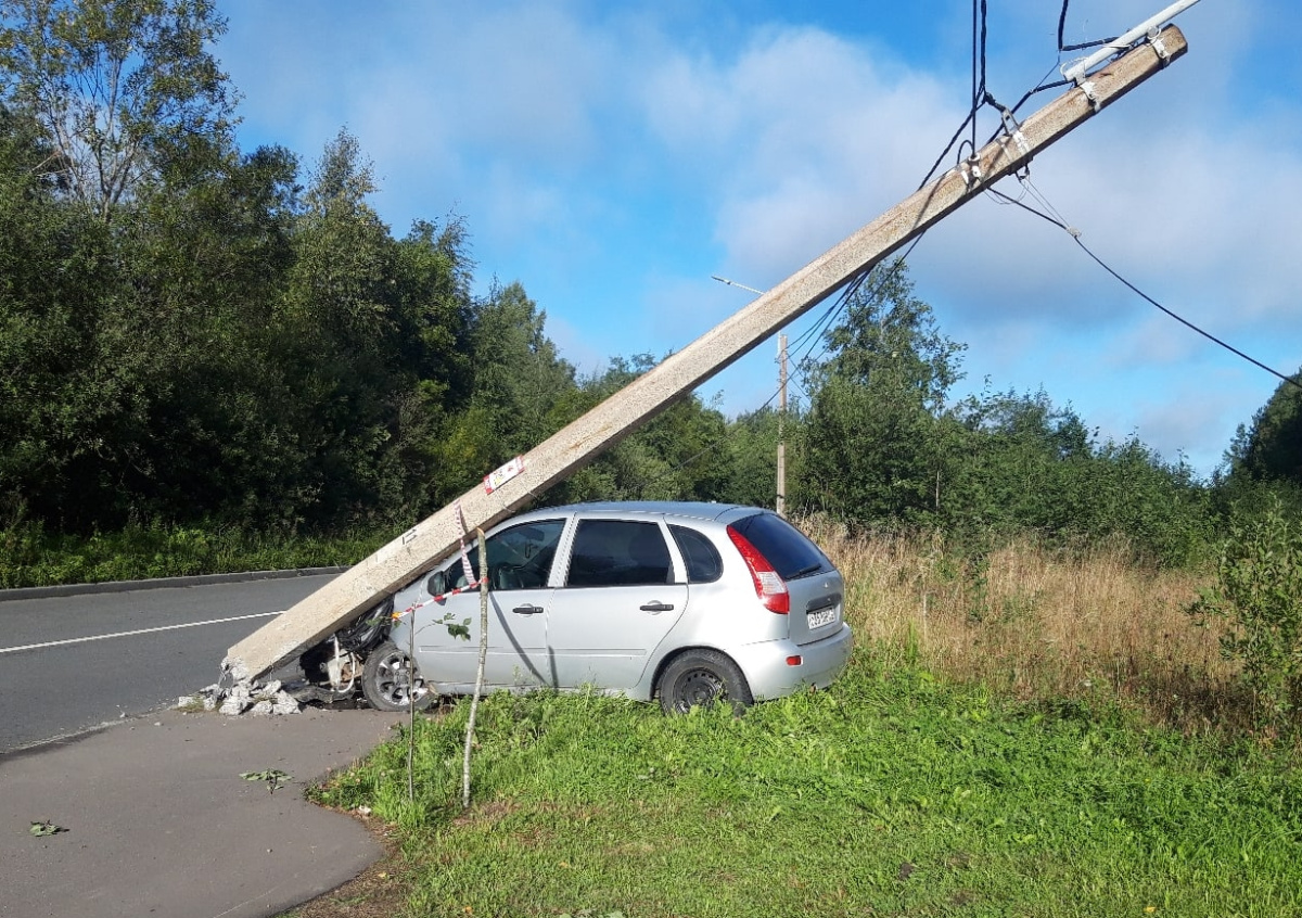 В Петергофе придавленный столбом автомобиль остался без водителя