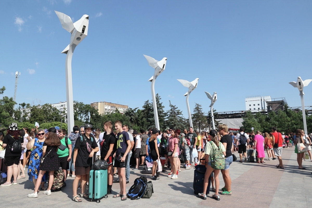 Дети на площади в Мариуполе перед отправкой на отдых в детские оздоровительные лагеря Санкт-Петербурга и Ленинградской области Дети на площади в Мариуполе перед отправкой на отдых в детские оздоровительные лагеря Санкт-Петербурга и Ленинградской области Фото: Надежда Чичерова/РИА Новости