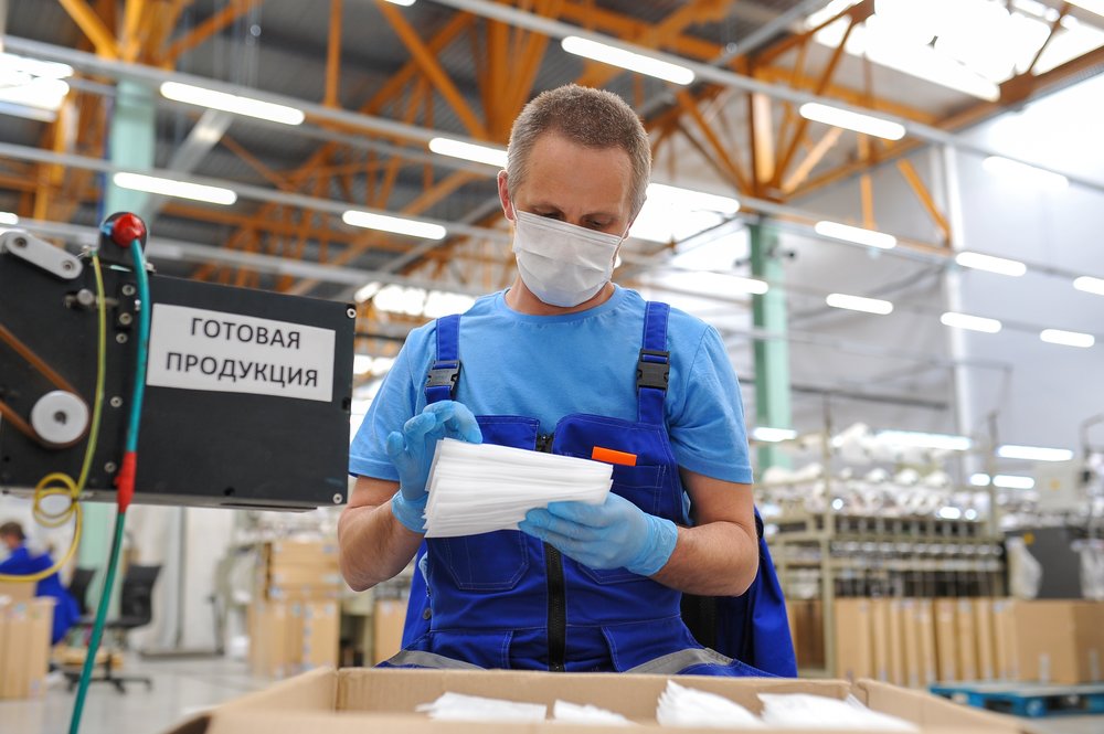 За неделю производство медицинских масок в РФ выросло на 63% и достигло 6,5 млн изделий в сутки.