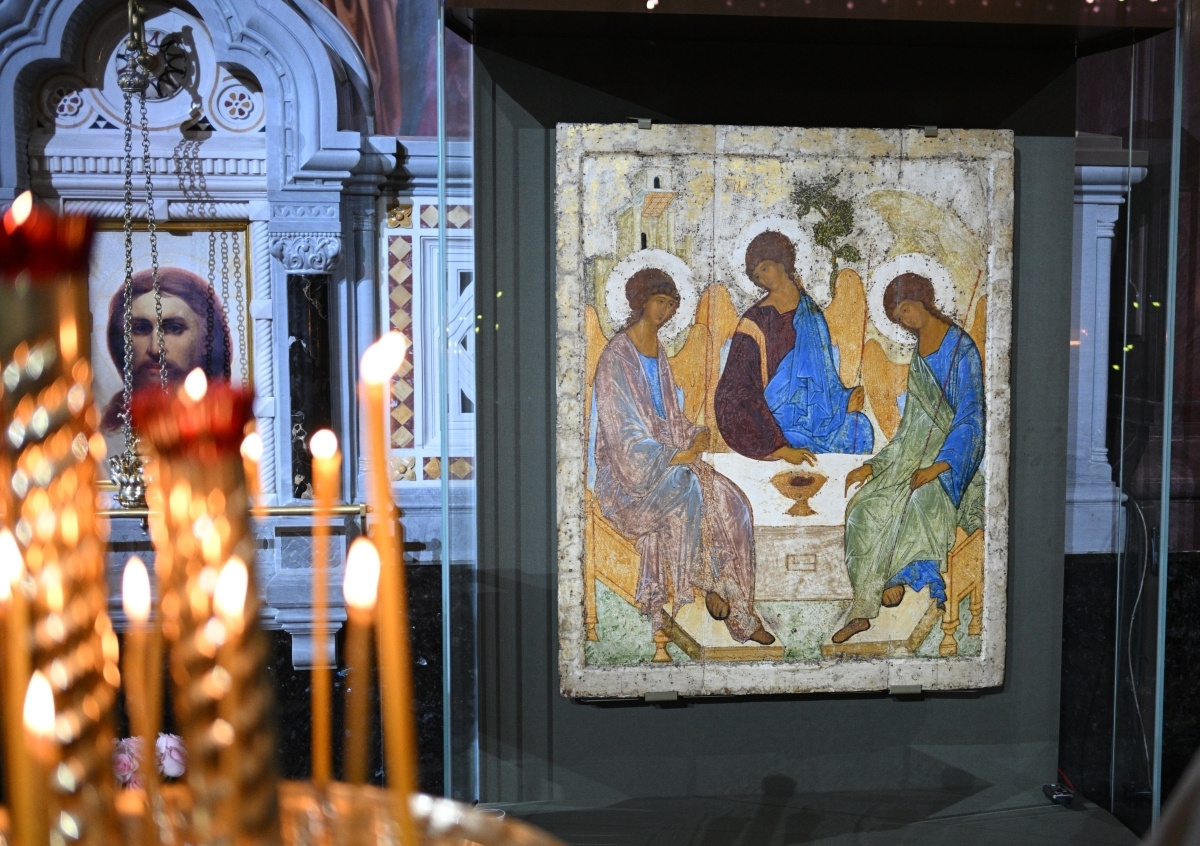 Икона «Троица» Андрея Рублева будет находиться в храме Христа Спасителя в Москве до 23 июня, когда православные христиане будут отмечать день Святой Троицы, сообщили во время рождественской вечерни, которую провел патриарх Кирилл, пишет ТАСС. После этого реликвия вернется на свое историческое место в Троице-Сергиеву лавру.