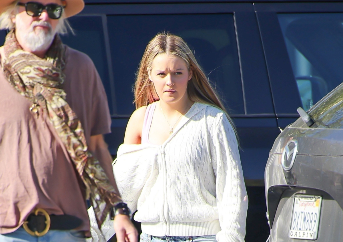 Финли была одета в розовый топ, белую кофту на молнии с капюшоном и голубые джинсы с заниженной талией и широкими штанинами. Кроме того, внучка Элвиса была в коричневых уггах, а на ее шее висела цепочка с кулоном. Гладко уложенные волосы были распущены.